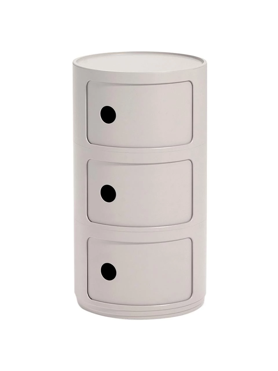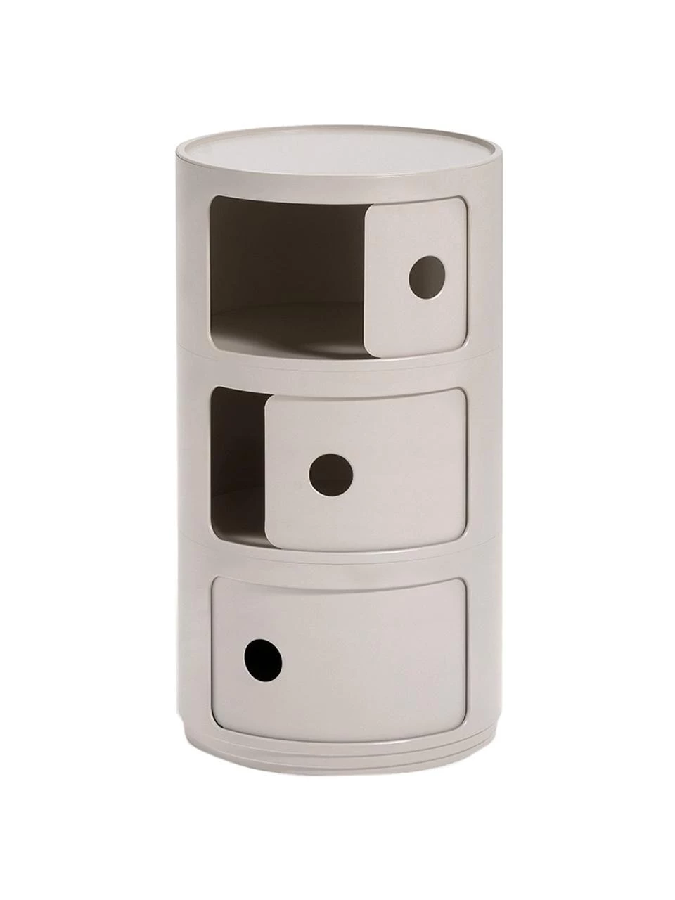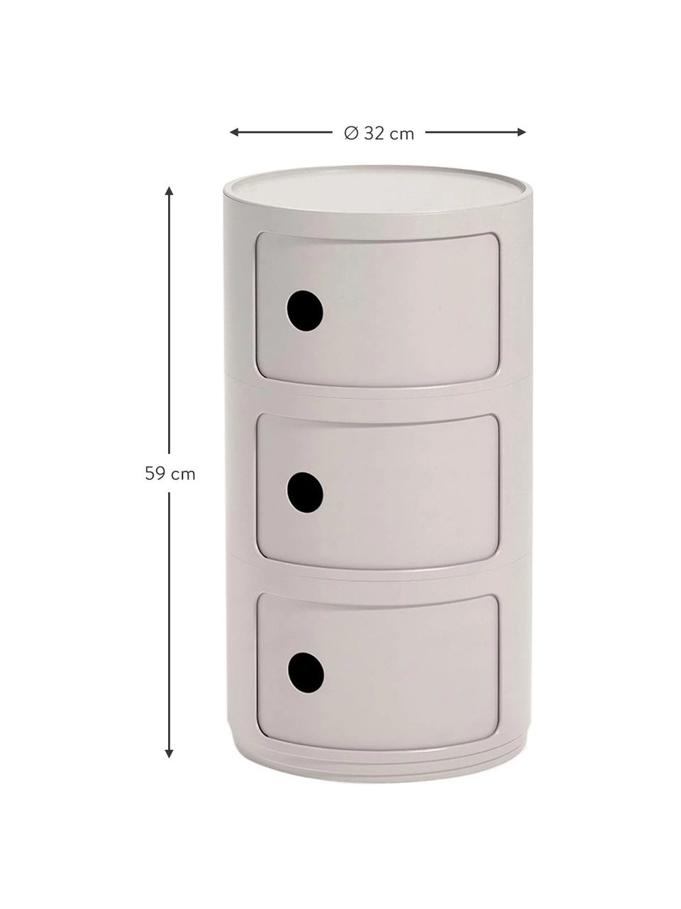 Container bestehend aus 3 runden Aufbewahrungsfächern inklusive Schiebetüren