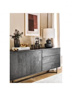 Westwing Collection Schwarzes Sideboard Luca mit Türen aus Massivholz, B 160 x H 70 cm