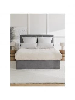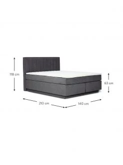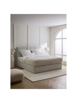 Westwing Collection Boxspringbett Livia mit Stauraumfunktion in Grau, B 140 x L 200 cm, Härtegrad 2