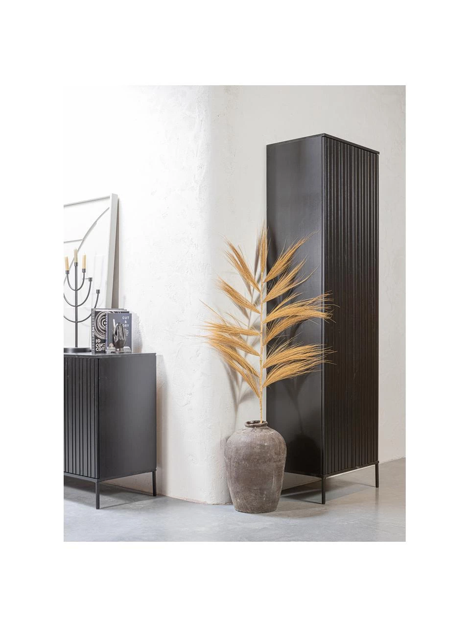 – Schrank mit 2 geriffelten Türen