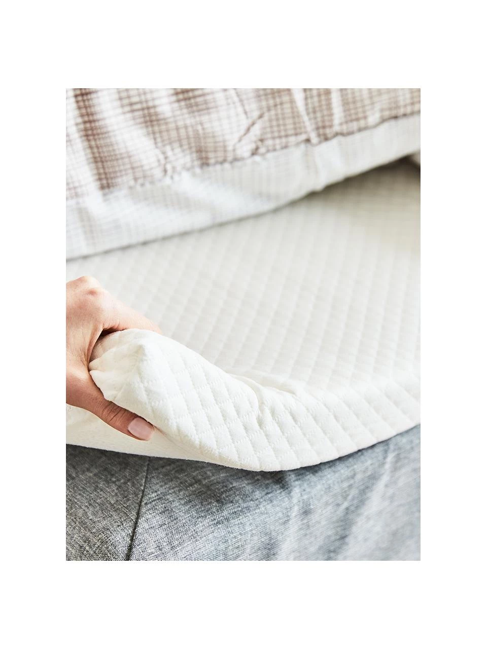 Fester Halt durch Noppen auf der Unterseite und vier Bändern zur Befestigung an den Matratzenecken.