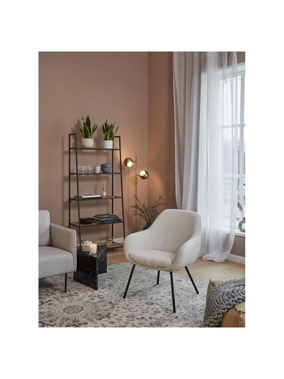 Der moderne Cocktailsessel Jana ist der ideale Ort zum Lesen und Entspannen. Das minimalistische Design mit runden Kanten und der Bezug aus einem weichen Strukturstoff sorgen für bequemen und ausgewogenen Sitzkomfort