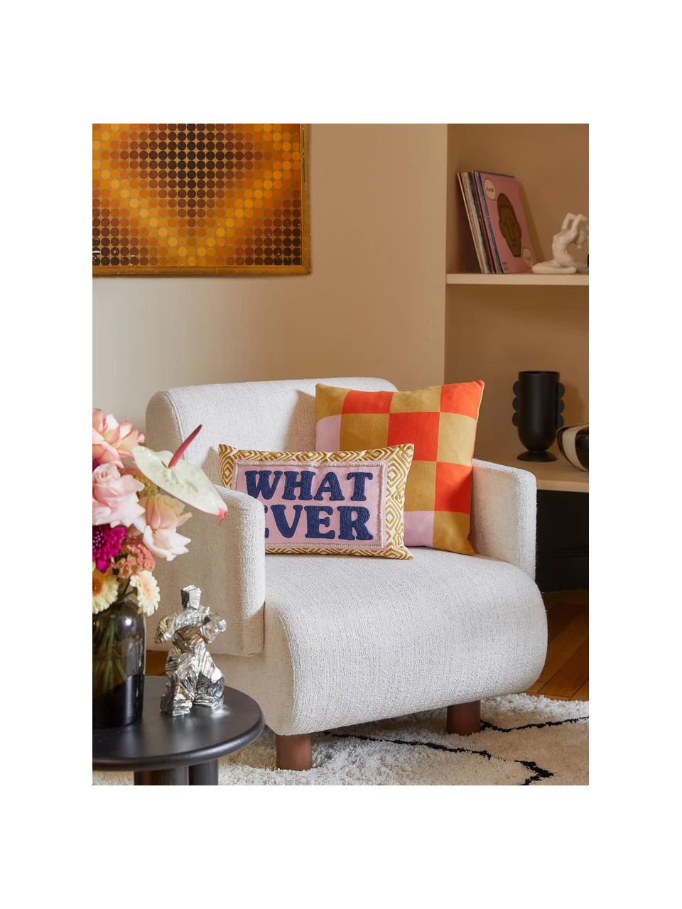 Als Ergänzung zum Sofa oder als einzelnes Highlight – der moderne Cocktail-Sessel „Coco“ ist in jedem Fall ein schöner Hingucker. Der weiche Bouclé-Bezug und die organische Form machen ihn zum Trend-Piece im Wohnraum. Gemütlich ist er übrigens auch noch!