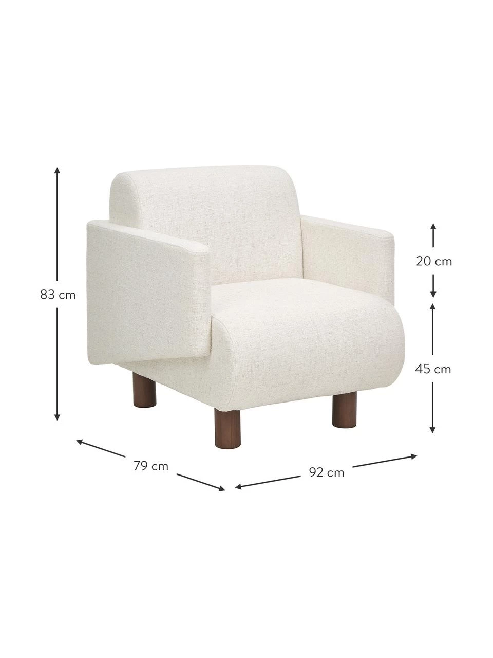 B 92 cm, H 83 cm, T 79 cm