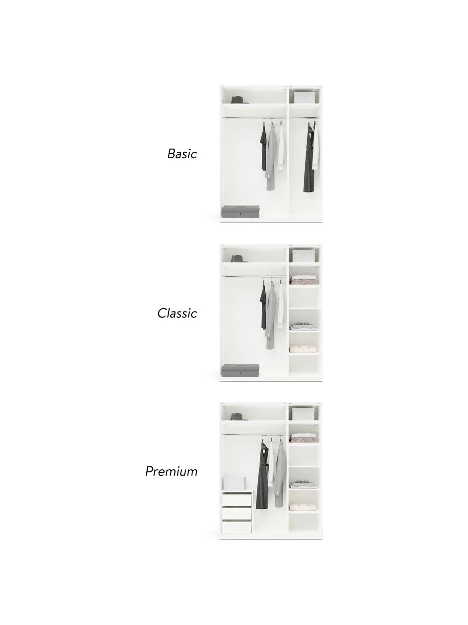 – Modularer Kleiderschrank mit Basic Interior inkl. 2 Kleiderstangen, 2 Einlegeböden