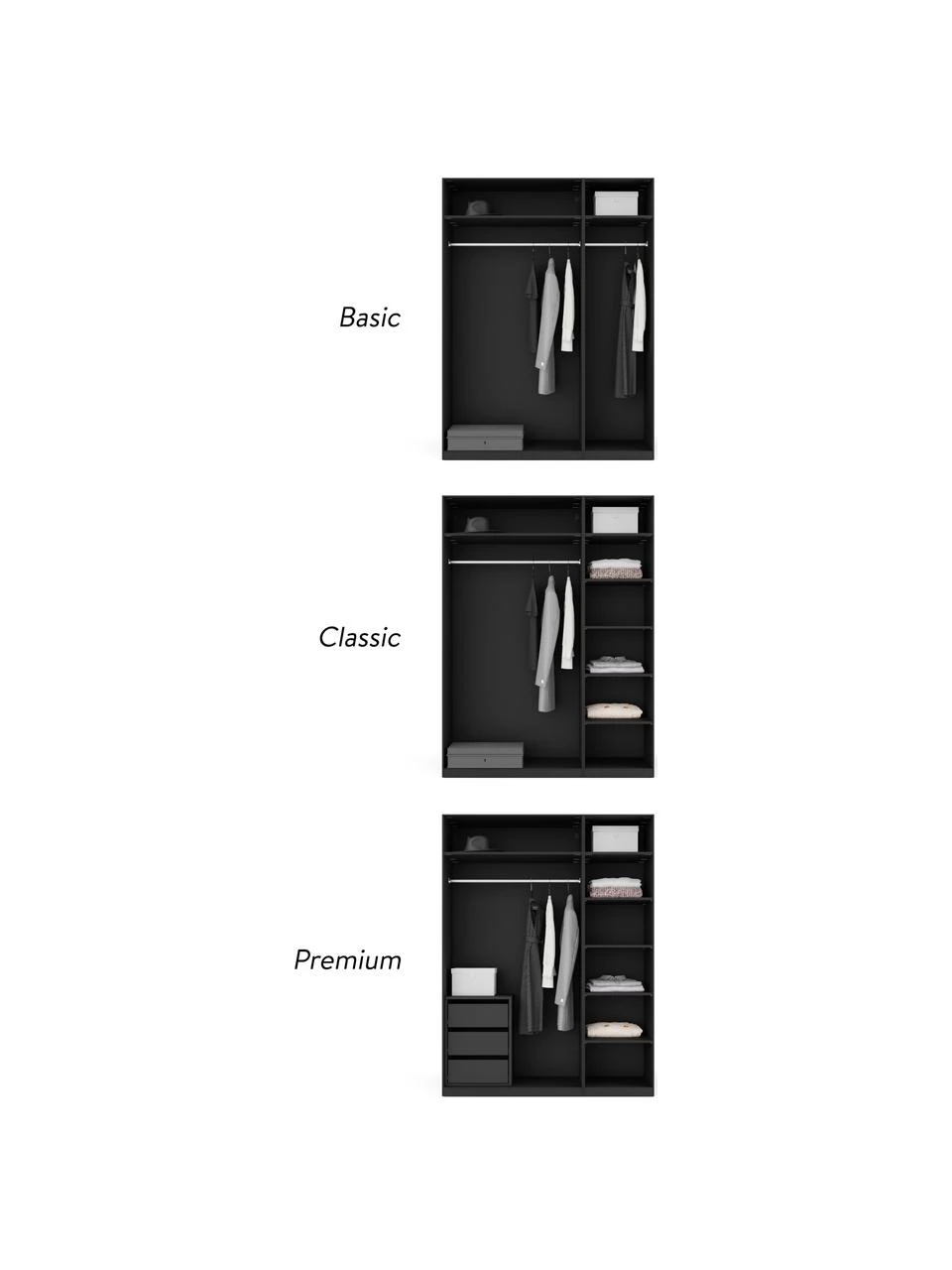– Modularer Kleiderschrank mit Basic Interior inkl. 2 Kleiderstangen, 2 Einlegeböden