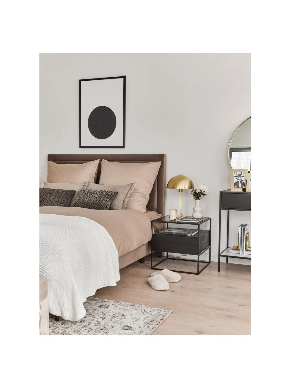 Der Nachttisch wird platzsparend verpackt geliefert – nach Montage der Glasplatte kann er sofort verwendet werden.