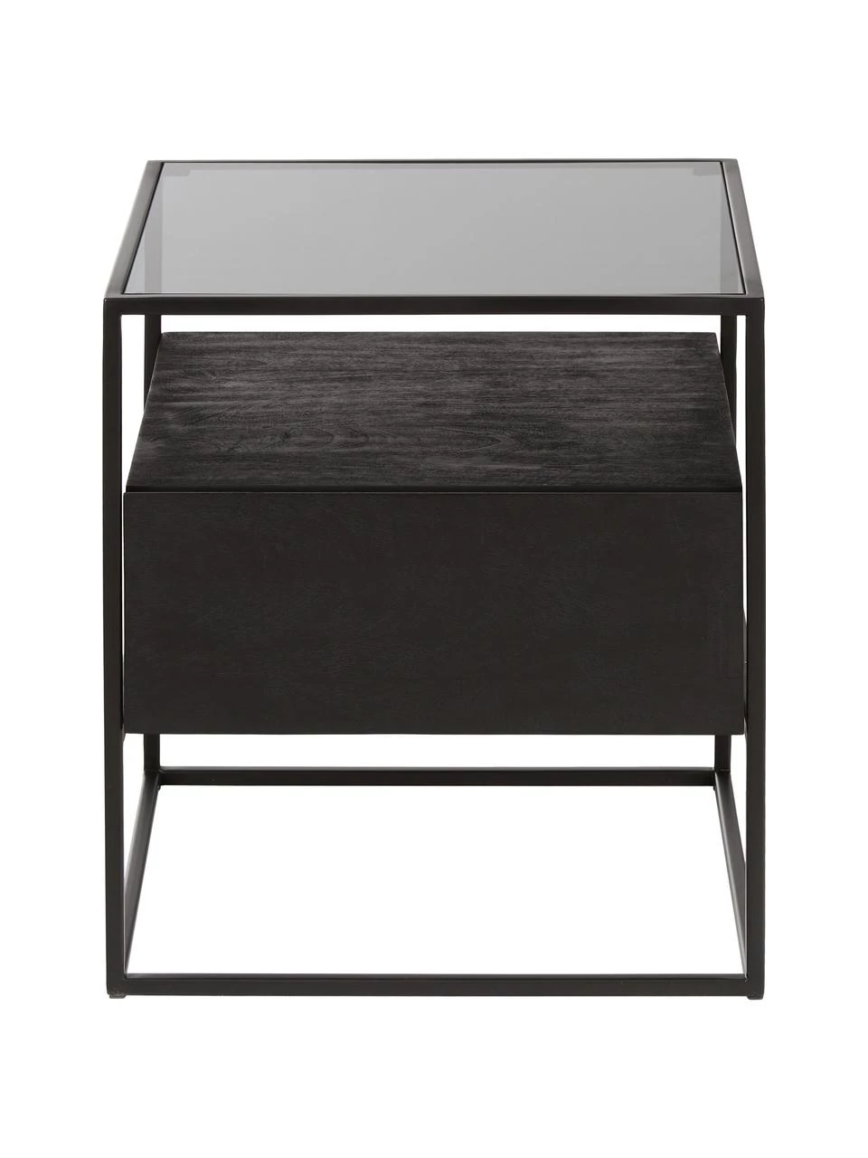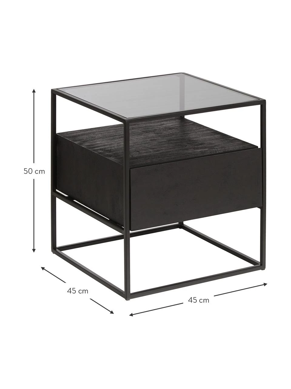 – Nachttisch mit Glas-Tischplatte und einer Schublade