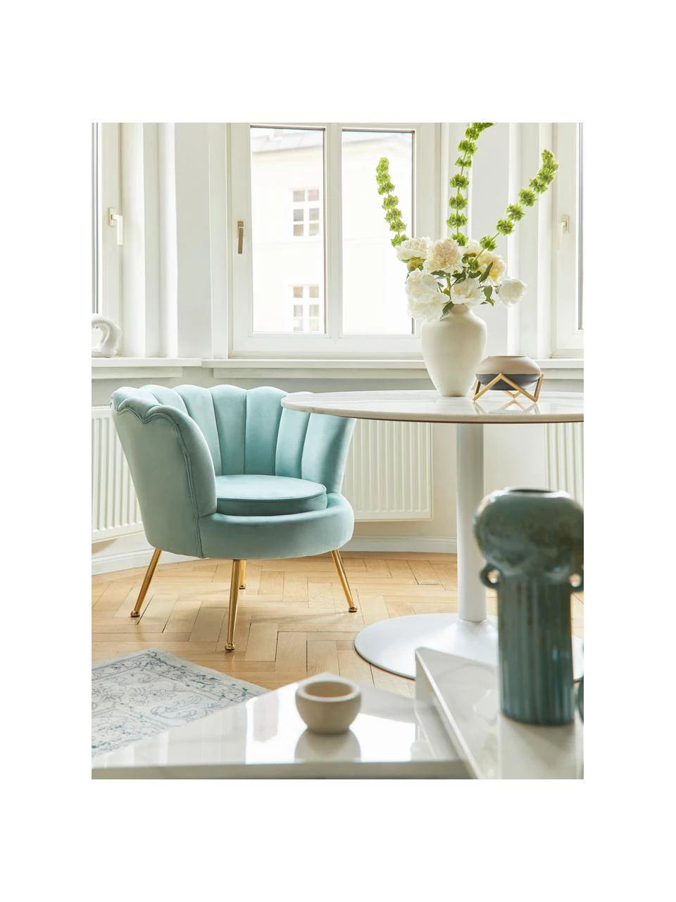 Der Sessel wird platzsparend verpackt geliefert – nach Montage der Füße kann er sofort genutzt werden.